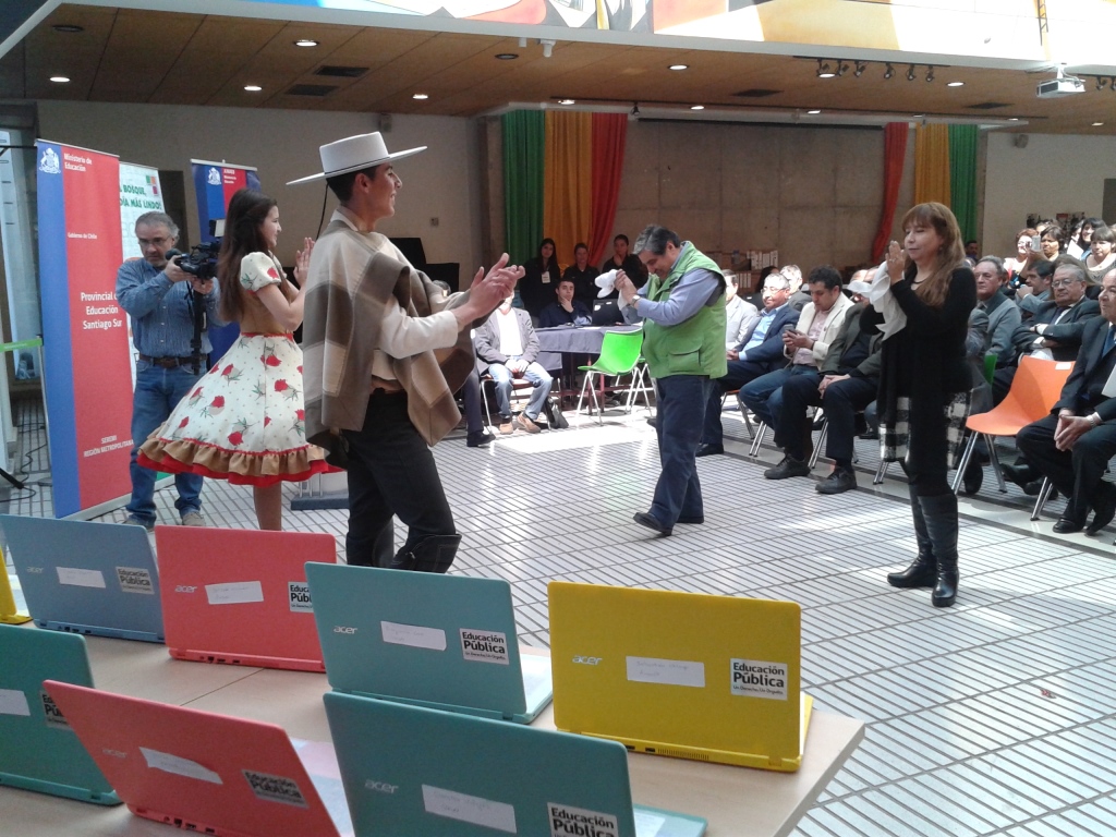 El día miércoles 30 de septiembre, los estudiantes beneficiarios del programa «me conecto para aprender», tuvieron una ceremonia de entrega de su computador en el Centro Cívico de la comuna El Bosque. Contó con la presencia del Alcalde Sadi Melo Moya, la Directora de educación de la comuna El Bosque y otras autoridades. Nuestros campeones de cueca comunal Gabriel Padilla 8°A y Maite Ríos 8°A participaron con un hermoso baile. 20150930_115628