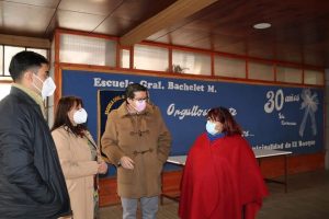Durante la misma jornada, Fernando Ochoa y Patricia Coñoman fueron hasta la Escuela Básica Gral. Alberto Bachelet, para conversar con la directora del establecimiento la Sra. Patricia Gambra, para que diera a conocer el resultado de la inspección realizada por la Mutual de Seguridad, para un retorno a clases presencial, responsable y gradual.