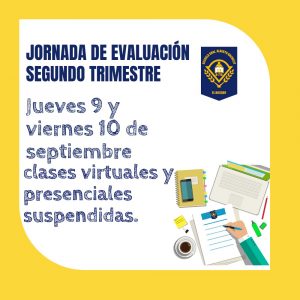 Los días jueves 9 y viernes 10 septiembre. Jornada evaluación segundo semestre.
