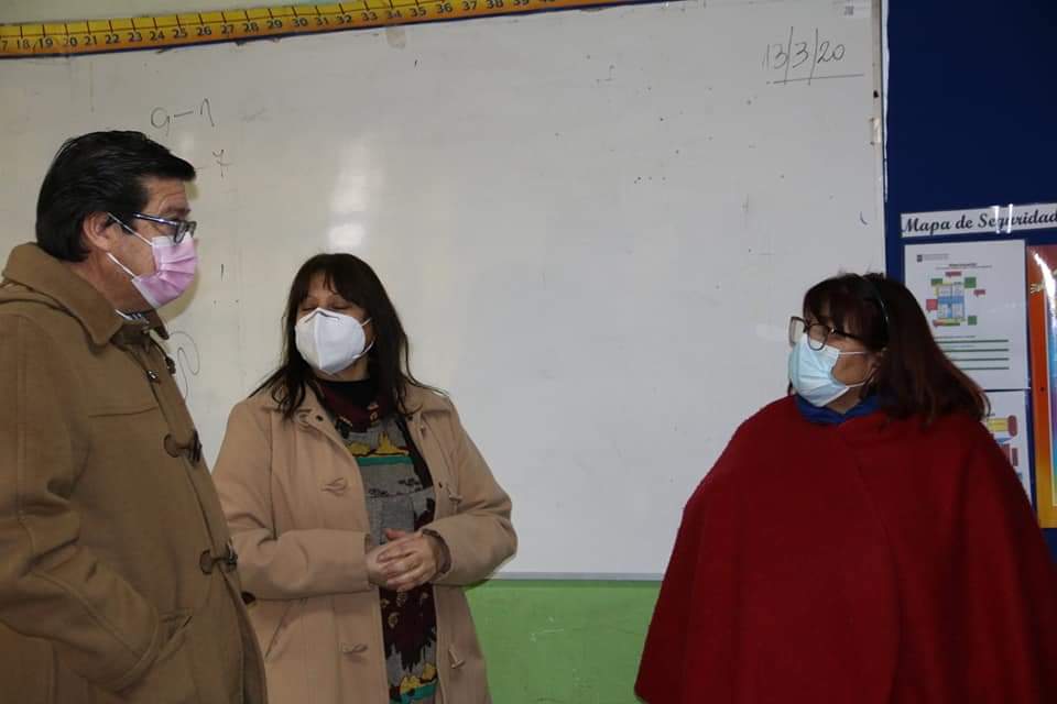Durante la misma jornada, Fernando Ochoa y Patricia Coñoman fueron hasta la Escuela Básica Gral. Alberto Bachelet, para conversar con la directora del establecimiento la Sra. Patricia Gambra, para que diera a conocer el resultado de la inspección realizada por la Mutual de Seguridad, para un retorno a clases presencial, responsable y gradual.