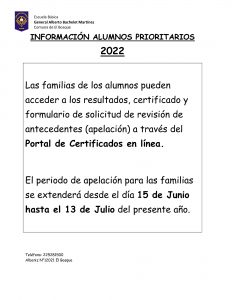 Información Alumnos prioritarios 2022.