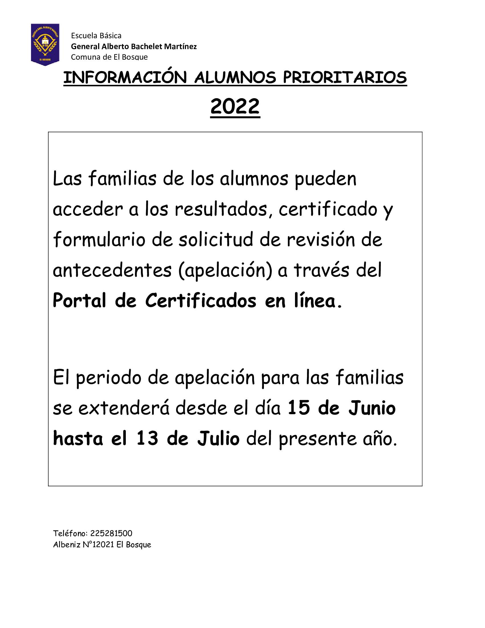 INFORMACIÓN ALUMNOS PRIORITARIOS 2022