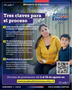 Informamos que comienza el proceso de admisión escolar 2025, a contar del 2 al 30 de agosto.